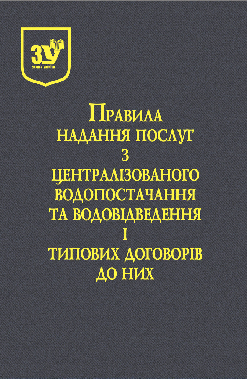 Правила надання послуг з централізованого водопостачання та централізованого водовідведення і типових договорів про надання послуг до них: збірник основних нормативних актів: чинне законодавство зі змінами та допов. станом на 2024 р. – К.: ПАЛИВОДА А. В., 2024. – 168 с. – (Закони України).